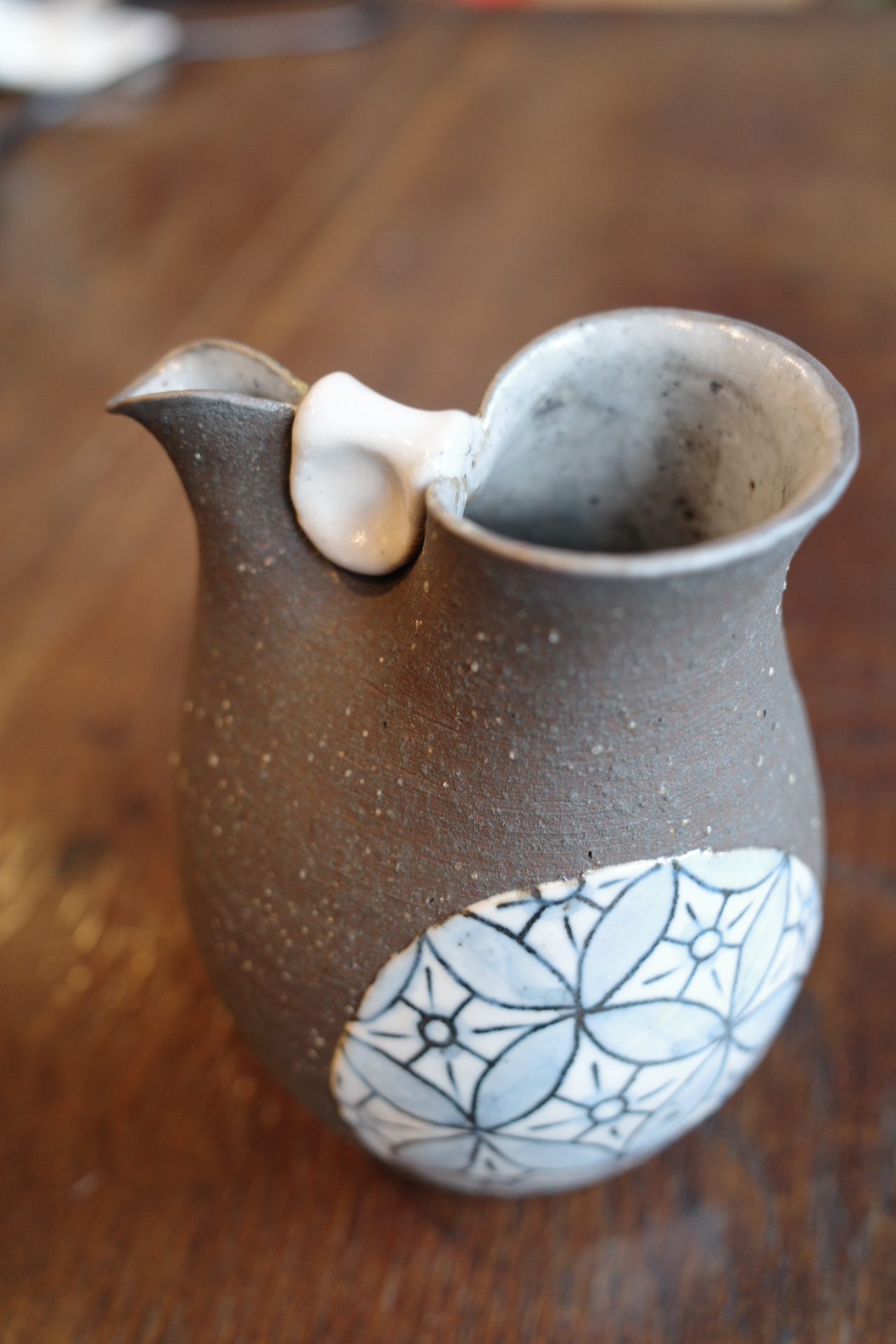 注ぎ口、注入口共にホツレ(小さいかけ)がたくさん出来て いました。 そういった状態の場合、一つ一つを仕上げてしまうと逆に悪目立ち してしまう場合があります。