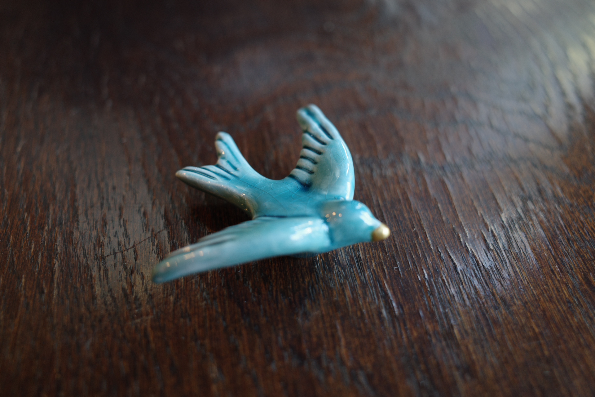 トルコ釉の鳥本体の色に金泥がとても映えて、元からこの